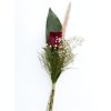 Vkusná a decentní kytice složená z jedné růže, gypsophily, hyperica, sušiny, aspidistry a tree fenu. Symbolické poděkování s dotekem přírody – ideální volba, když chcete vyjádřit vděčnost s elegancí a jemností.